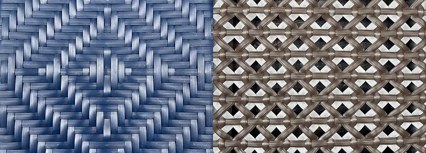 Our weaving is executed using a wide range of materials, including synthetic wicker and