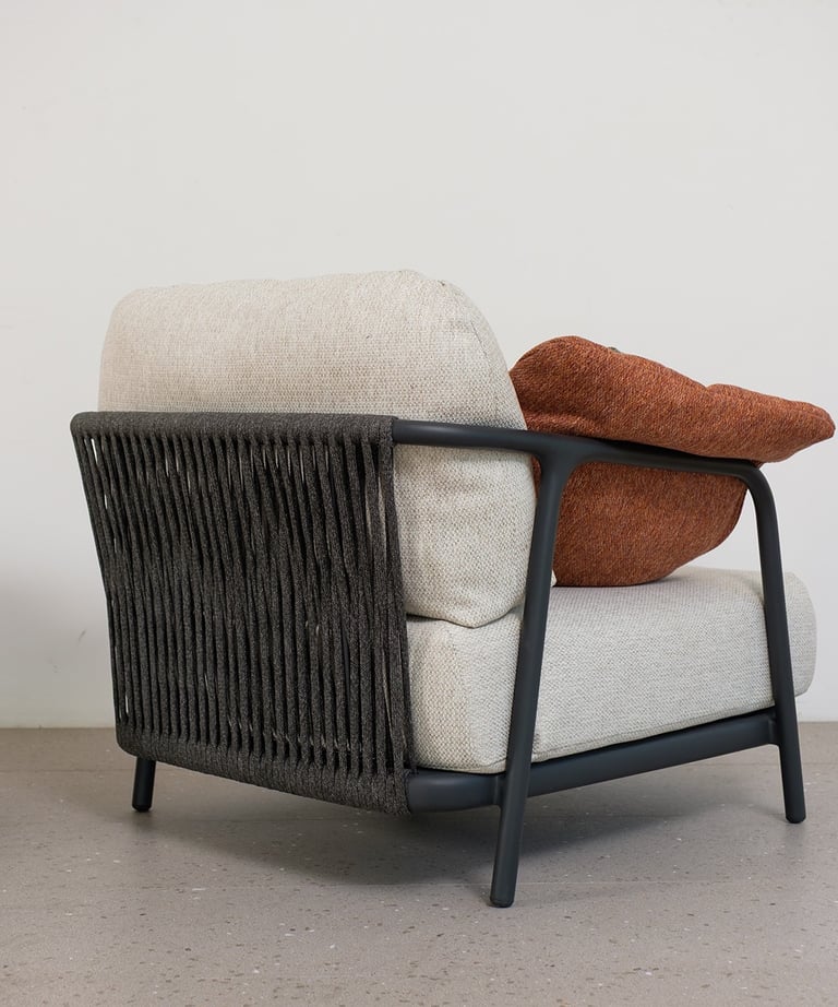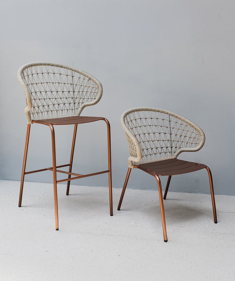 Outdoor furniture collections designed with woven details and alumunium structures.
